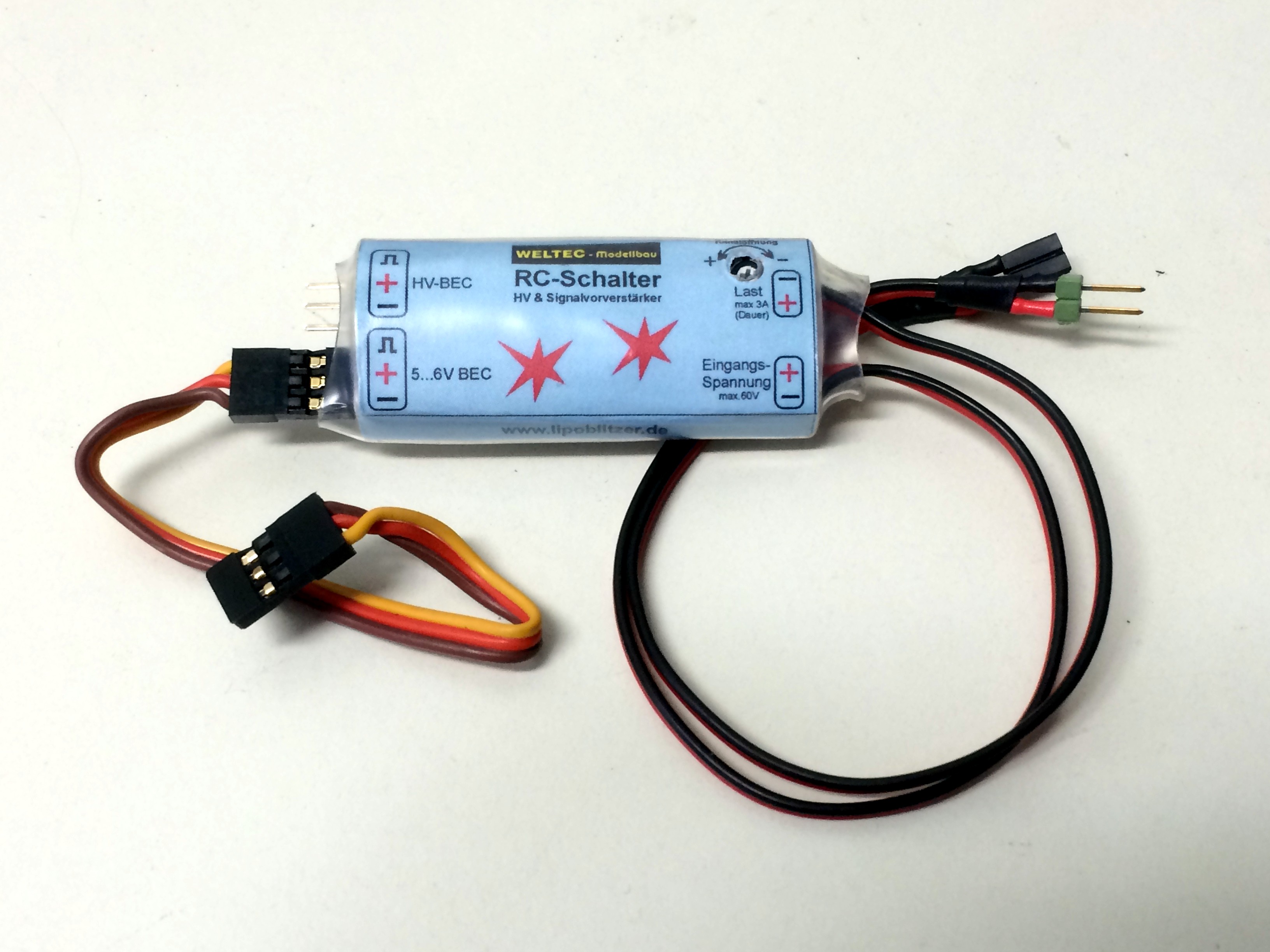 Wird der Verbraucher direkt aus dem BEC betrieben (also z.B. Landescheinwerfer), dann bitte dies gleich mit angeben. In diesem Fall wird dann die BEC-Leitung gleich als Spannungseingang benutzt und eine "Kabelei" entfällt...
